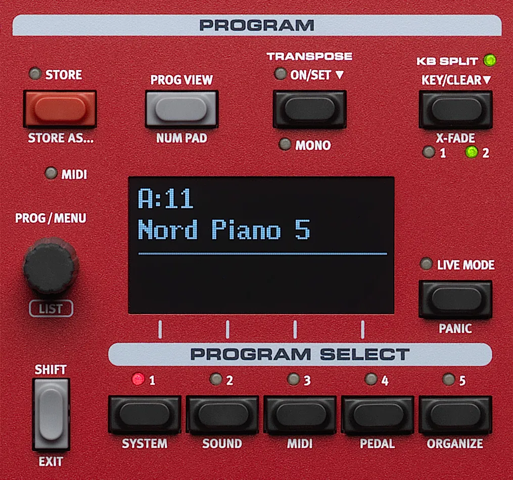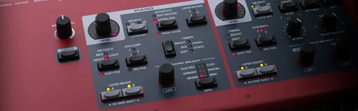 The Nord Piano 5 has dedicated dials and buttons for full hands-on control during a live performance. Transposing, setting up a split point or creating a layered sound can be accomplished instantly.