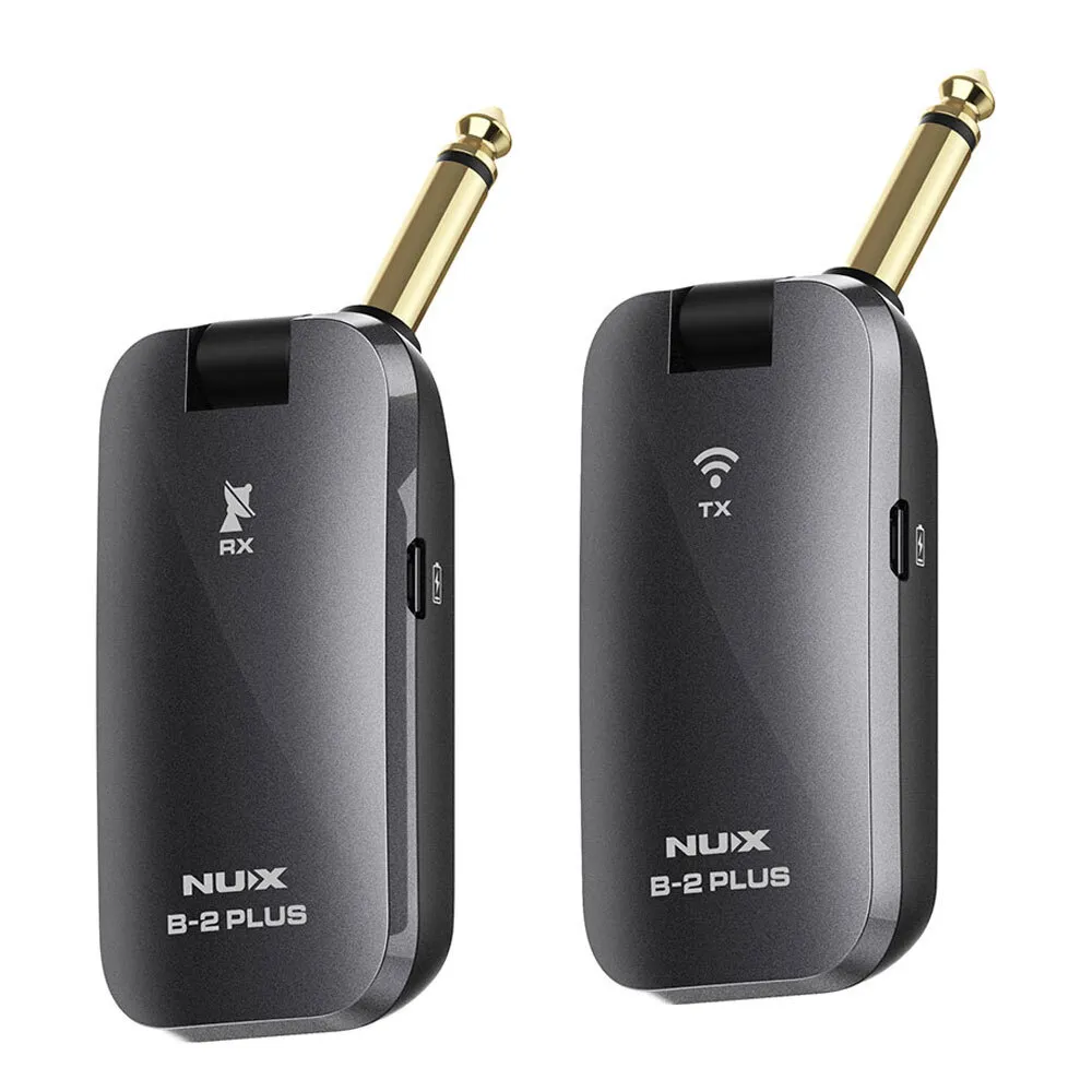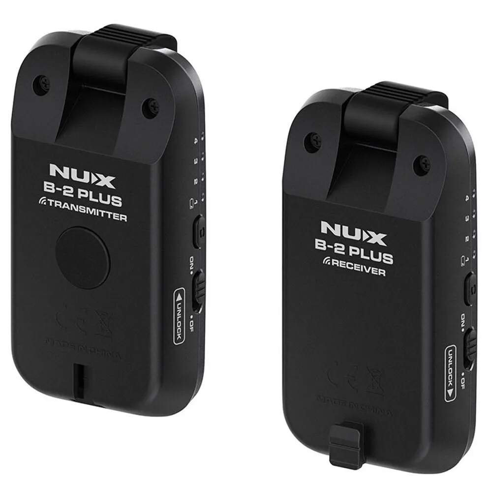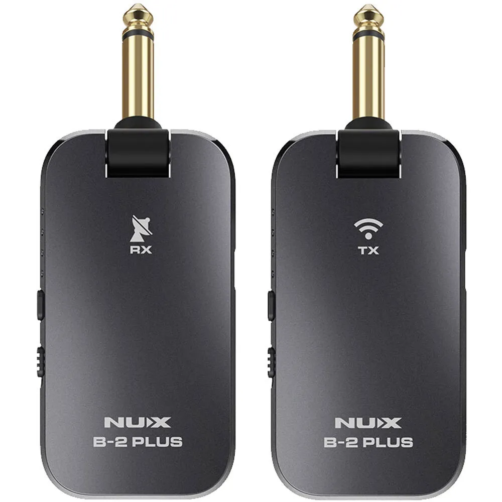The NUX B-2 PLUS is a pocket-size 2.4GHz wireless system that offers guitar players an easy solution to go wireless. Step on the latest NUX wireless transmission algorithm, B-2 PLUS secures a better connection in a noisy RF environment. With the newly-added auto-off function, you'll never have to worry about leaving the system on and draining out the batteries.