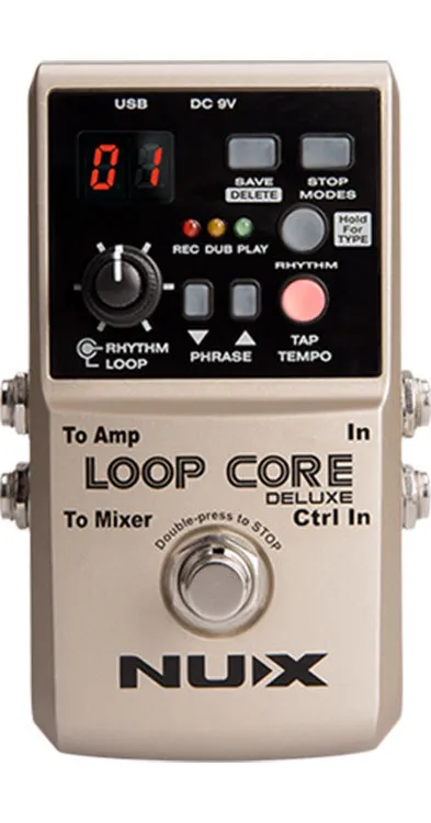 This bundle includes the NU-X Loop Core Deluxe Effects Pedal and the NU-X Dual Foot Switch. With upgraded hardware, the new Loop Core Deluxe allows you to record loop phrases up to 8 hours with unlimited layers in 24-bit high-resolution audio quality into 99 saved memories.