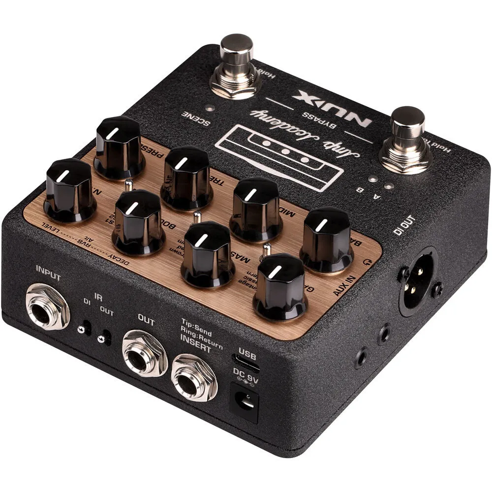 Amp Academy inherits NUX TSAC-2K (White-box Amp Modeling) algorithm which delivers the sound and feel of world-class tube amplifiers in a super-portable stomp-box enclosure. And, its huge headroom and dynamic range is a pedal friendly platform.
