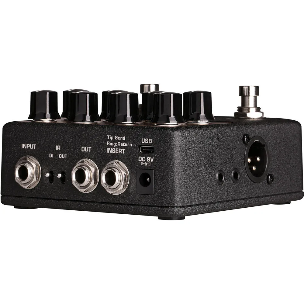 Connect Amp Academy directly to a recording interface for excellent guitar tone, instantly, without the need to set up an amp or microphones. (Toggle IR OUT switches to UP position if you want to use the IR signal for 1/4” out. If you want to engage/disengage IR signal with DI OUT, please HOLD A/B foot switch and power the pedal. IR ON: A/B indicators will flash 3 times. IR OFF: A/B indicators flash will NOT flash.)