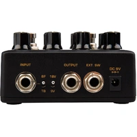 FIREMAN is based on the legendary amplifier builder's famous distortion pedal. It's a very amp-like distortion pedal with Modern Brown Sound. We designed it with 2 independent VOLUME, GAIN control knobs to fit rhythm and solo applications. FIREMAN offers a True-bypass / Buffer-bypass toggle switch, and a 9V/18V toggle switch. The 18V position doubles the working voltage inside to give you wider dynamic range.