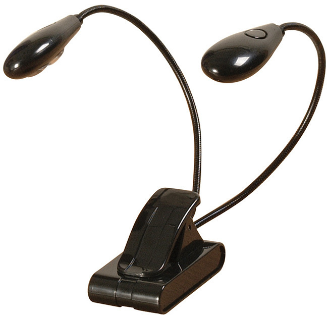 A 3-way switch on each lamp head lets you choose 2 LEDs, 1 LED or Off to suit your personal lighting needs while simultaneously controlling spill-over into the audience or other musicians.