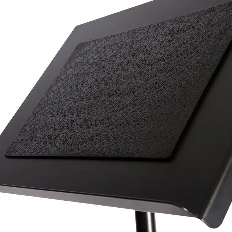 All steel tripod construction, complete with easy height adjustment knobs and non-slip rubber feet, ensures stability and durability, while the 15.5" x 11" desktop platform complete with sure, smooth angle adjustment features an 11" x 7" non-slip silicone pad for secure, vibration dampening laptop placement.