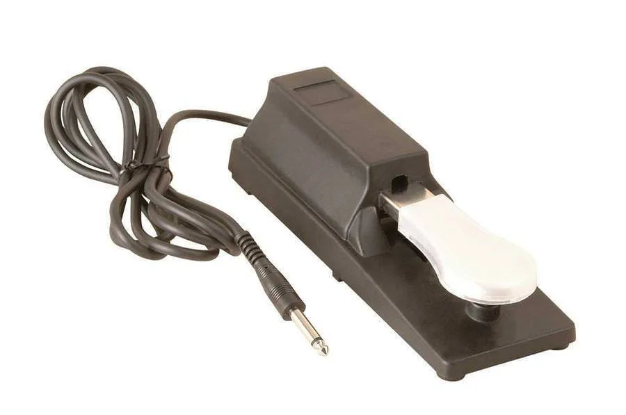 Piano-style pedal with built-in 6' cord and polarity switch. Compatible with any electronic keyboard with ¼" input jack.