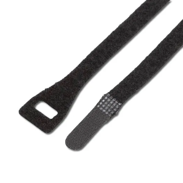 The perfect way to contain your unruly cables. Provides an easy, neat way to secure your guitar, mic and power cords. These fabric strips feature Velcro style closures to hold your coiled cables in place. Ties can remain on cable at all times.