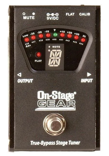 An affordable yet rugged solution for your Bass or Guitar pedal board and amp setup! Our OSGTA7800 True Bypass Pedal Tuner allows the player to tune on stage without being heard by the audience.
