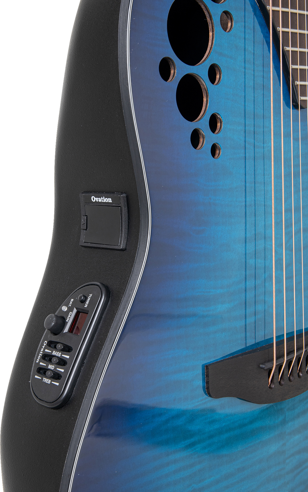 Furthermore, they are equipped with the Ovation-typical Multi Soundholes. This innovative construction uses several small openings at the edge of the guitar top instead of a single, central soundhole.