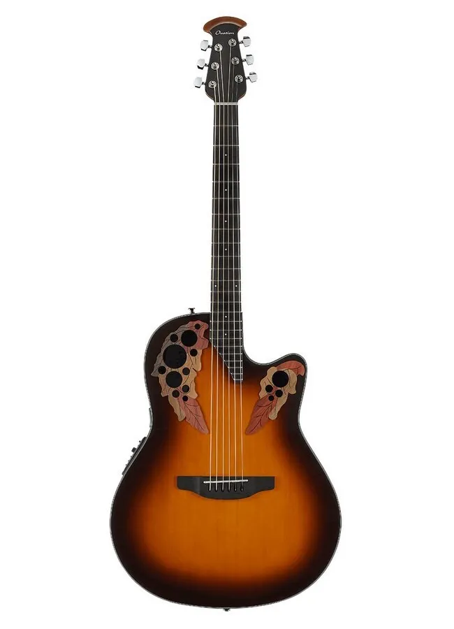 The Celebrity Collection Elite is a performance ready guitar offering striking aesthetics and pristine live sound. Ovation's unique multi-soundhole design provides clear highs and a focused, balanced bass response. The solid, Sitka spruce top has laser-cut epaulets that set it apart from the rest, and provide remarkable note for note clarity. It features Ovation’s signature sunburst finish. The Lyrachord® composite, mid depth body is comfortable standing or sitting and provides excellent projection. A satin-finished neck, Ovangkol fretboard and bridge all combine to make playing effortless and responsive. The Celebrity Elite is equipped with the Ovation Slimline pickup and OP-4CT preamp system with a three-band EQ, volume/gain control, onboard tuner and low-battery light that make it easy to dial in your sound. Whether you perform on stage, in church or in the garage, your Elite delivers the classic Ovation Elite sound: articulation and balance, projection, and nuanced tonal complexity.
