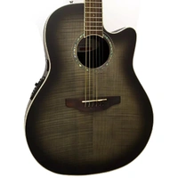 For the player who loves the performance of the Ovation Celebrity Collection, but is looking for a step up that is an inspiring thing of beauty, the Celebrity Standard Exotic is for you. The only thing "standard" is the traditional center soundhole design. This model features a highly figured, flamed maple top finished in a gloss, transparent, black burst. Just like all Celebrity Standards, this guitar just feels right thanks to the effortlessly playable satin-finish neck, the 10" radius fretboard and the way the top responds. The center soundhole gives back clear and loud resonance thanks to scalloped-X bracing support. For live performance, the Celebrity Standard includes an Ovation Slimline pickup and OP-4CT preamp system with a three-band EQ and onboard tuner. The mid depth, Lyrachord composite body is deep enough to offer warm low end, but shallow enough to play comfortably. When you want to create, write, play, or perform, the Celebrity Collection is ready.