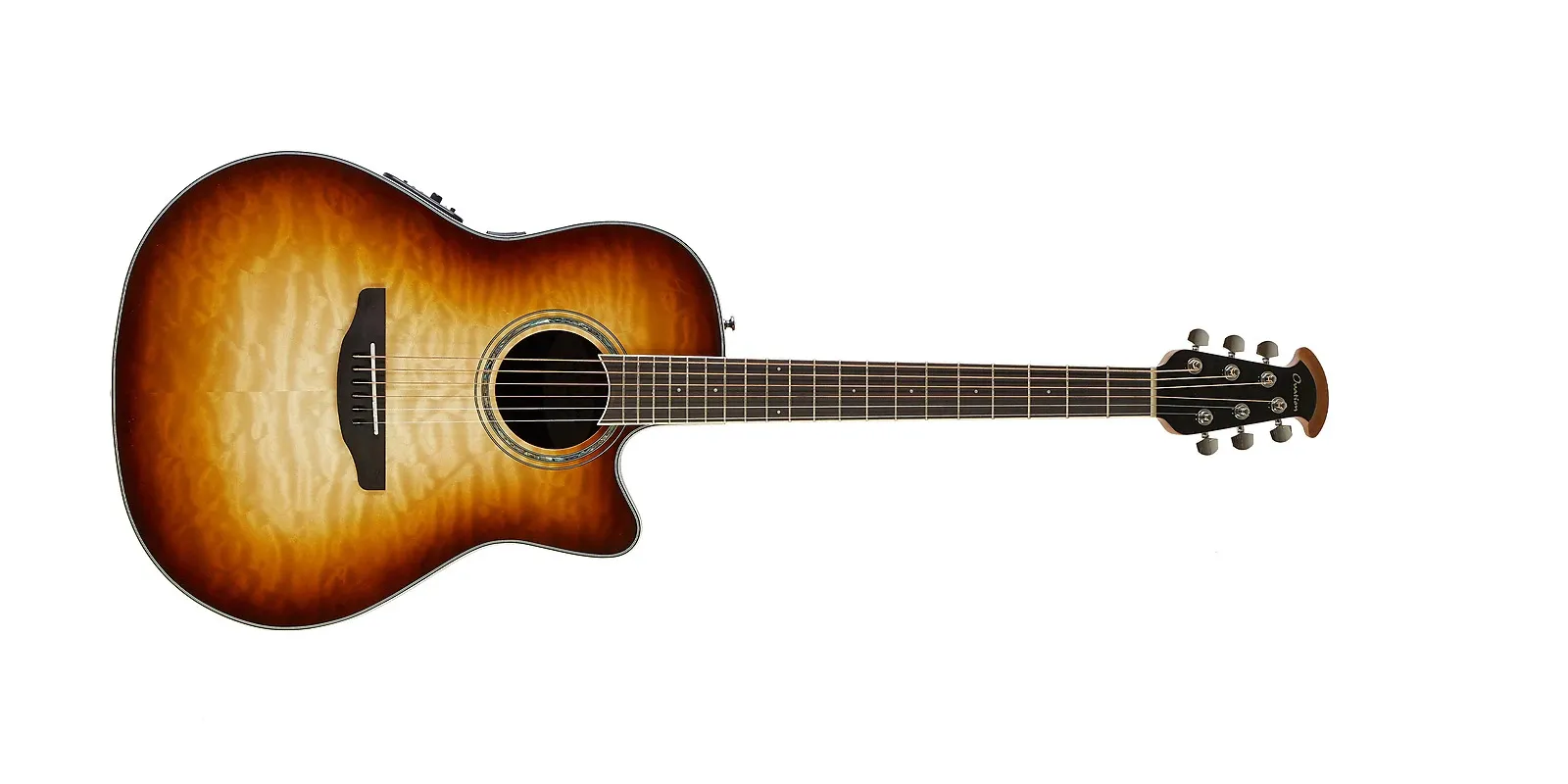 The Ovation Celebrity Standard Exotic models offer everything you need in terms of features performance and quality at attractive prices. The Celebrity Standard guitar feels right thanks to the effortlessly playable, satin-finish neck with a 10" radius fretboard. The Quilted Maple top responds perfectly to your softest finger-style picking or your hardest strumming.