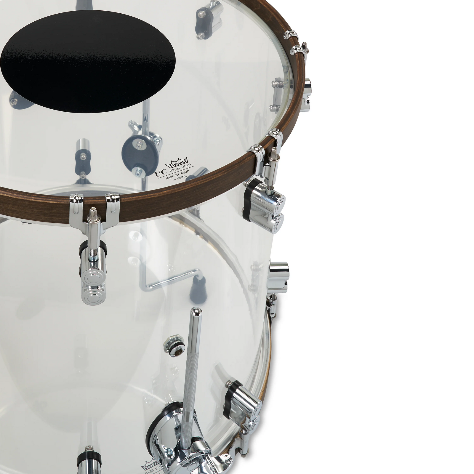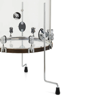 This 4-Piece Acrylic Kit celebrates the 25th Anniversary of PDP with a special fusion of seamless acrylic shells, walnut-stained hoops, and commemorative badges. Acrylic shells have been a mainstay in popular music due to their appealing looks and their bright attack, focused tone, and controlled sustain. These seamless shells are fitted with walnut-stained wood hoops, which adds a throaty tonal element and slightly increases resonance. This resonance is enhanced by the patented STM' system allowing maximum sustain while securing your mounted toms in place. These drums are also fitted with True-Pitch tension rods for more accurate and securing tuning. Available for 2024 only, this shell pack features a configuration of 7x10" and 8x12" mounted toms, 16x16" floor tom, and a 16x22" kick drum. These drums are fitted with Remo heads. *