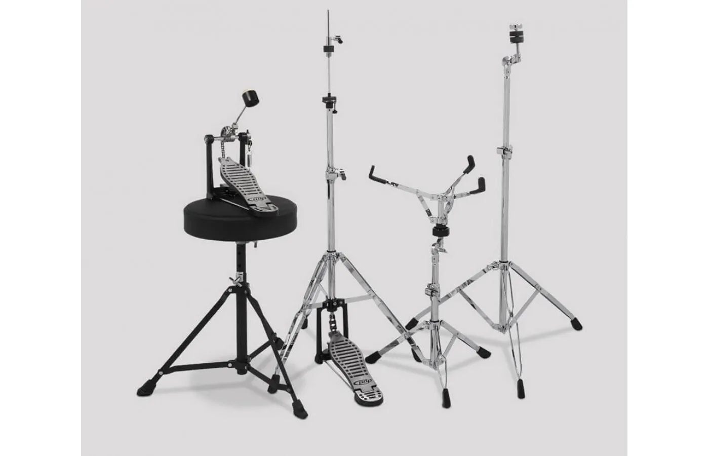 • Includes pedal, hi-hat stand, cymbal stand and snare stand