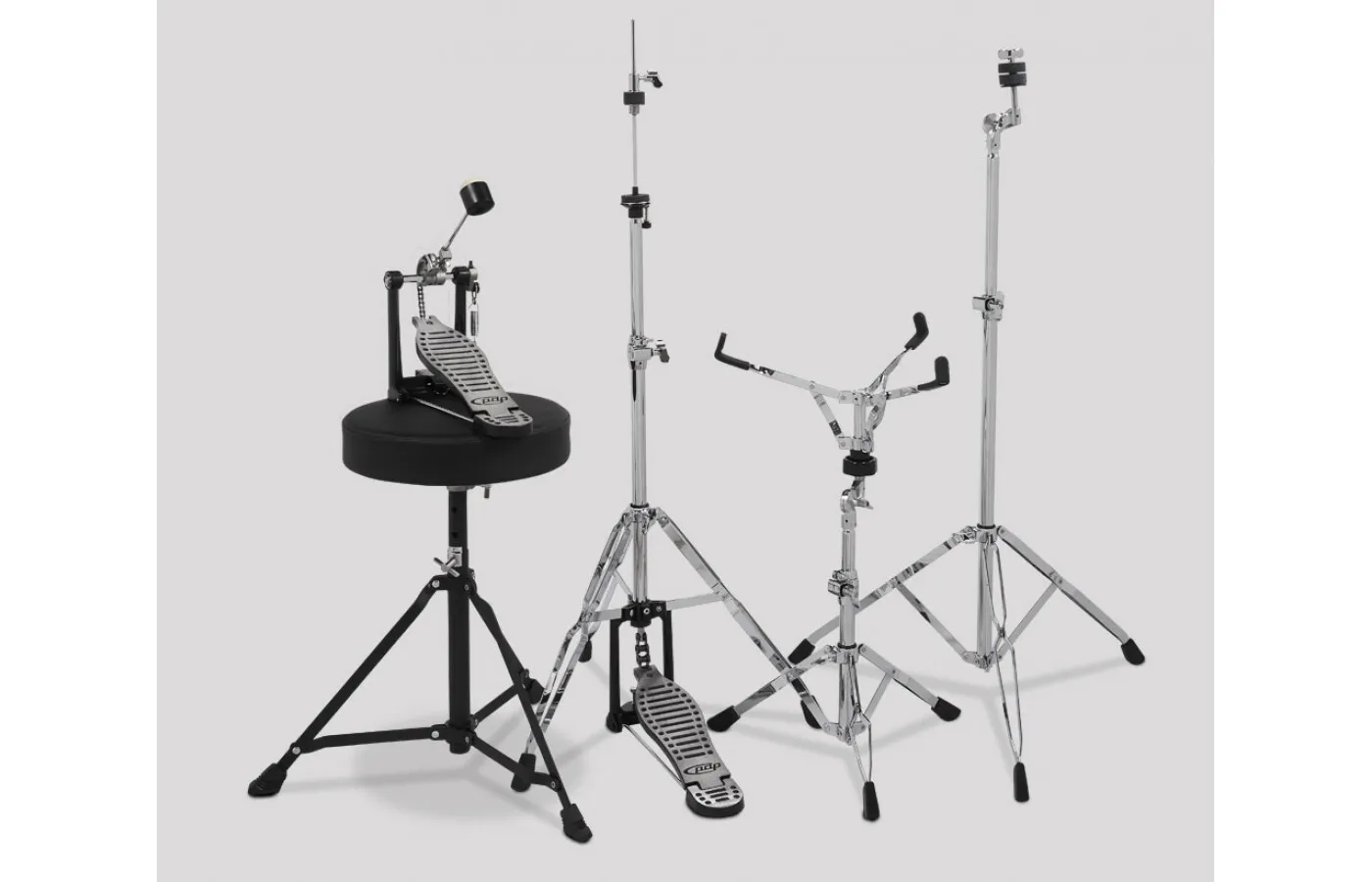 • Includes pedal, hi-hat stand, cymbal stand and snare stand