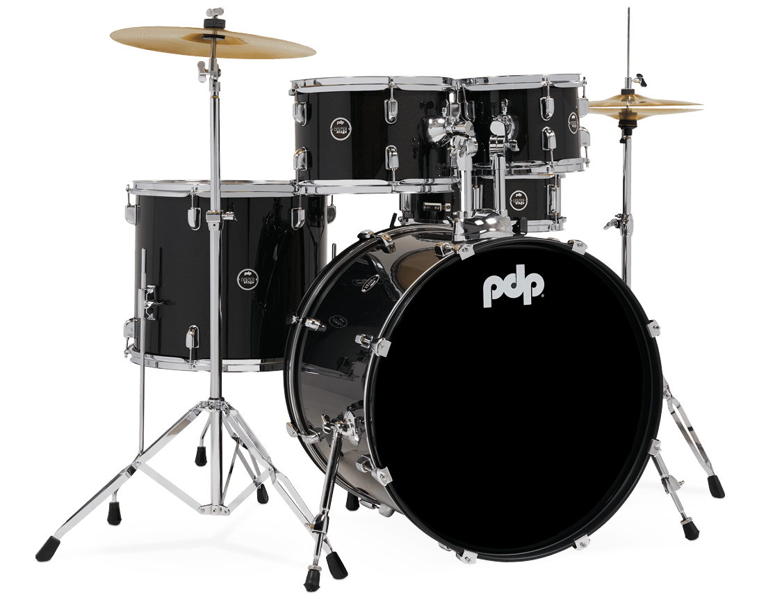 A great value from Pacific Drums & Percussion by DW, the Center Stage has several features offered on high-end PDP and DW drum kits along with a full hardware pack. The kit features the focused tone of birch and select hardwood hybrid shells. The shells are complemented by stage-stealing durable wrapped finishes that make this kit a perfect choice for students and aspiring drum heroes.