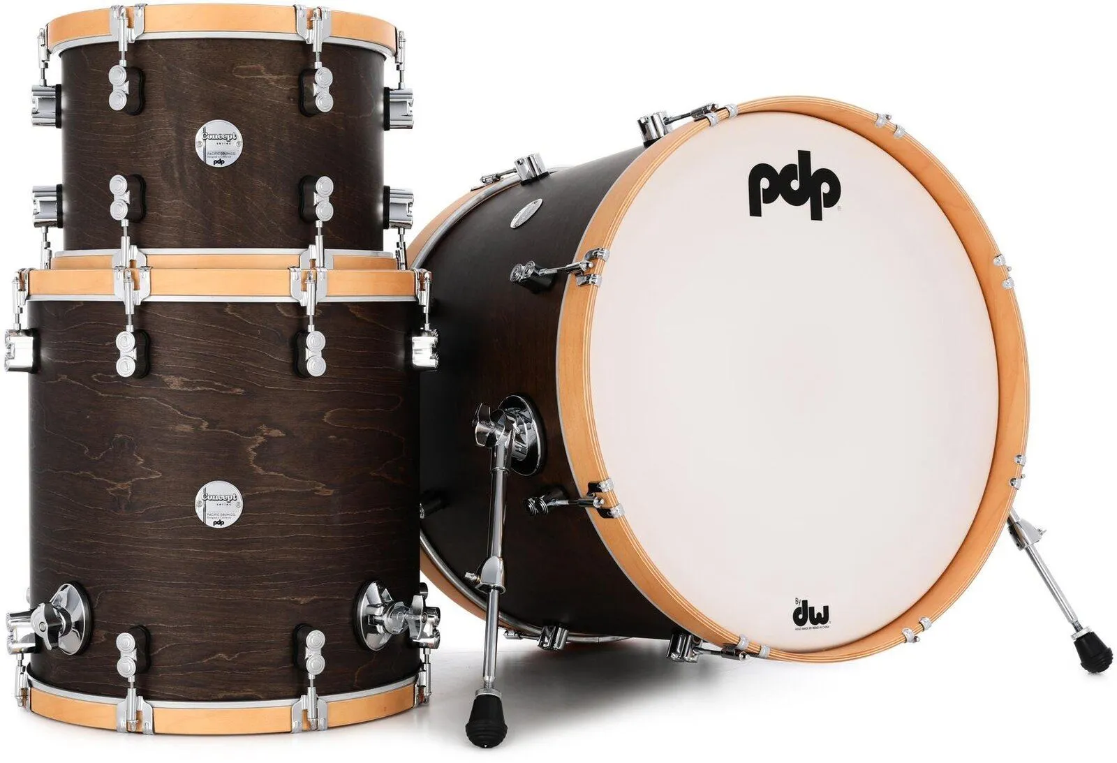 This PDP Concept Maple Classic shell pack is a minimalist's dream come true. Old-school vibe and tone issue from its 13" and 16" toms and 22" kick drum. PDP's maple shells, crowned with matching maple hoops, deliver warmth, bloom, and room-filling resonance as only large shells can. The satin finish on this kit looks stunning, complemented by DW-inspired Dual Turret lugs, recessed stamped claw hooks, and round offset badges. A full set of DW-designed heads completes the package. Just add a snare, and you're ready to rock with the PDP Concept Maple Classic shell pack