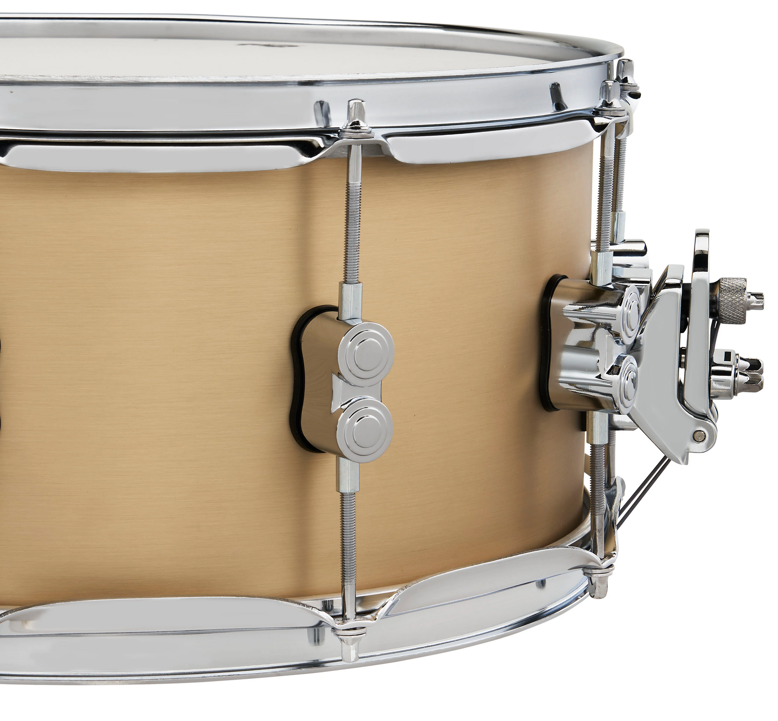 This stout snare drum features a brushed 3mm shell and high-end DW hardware.