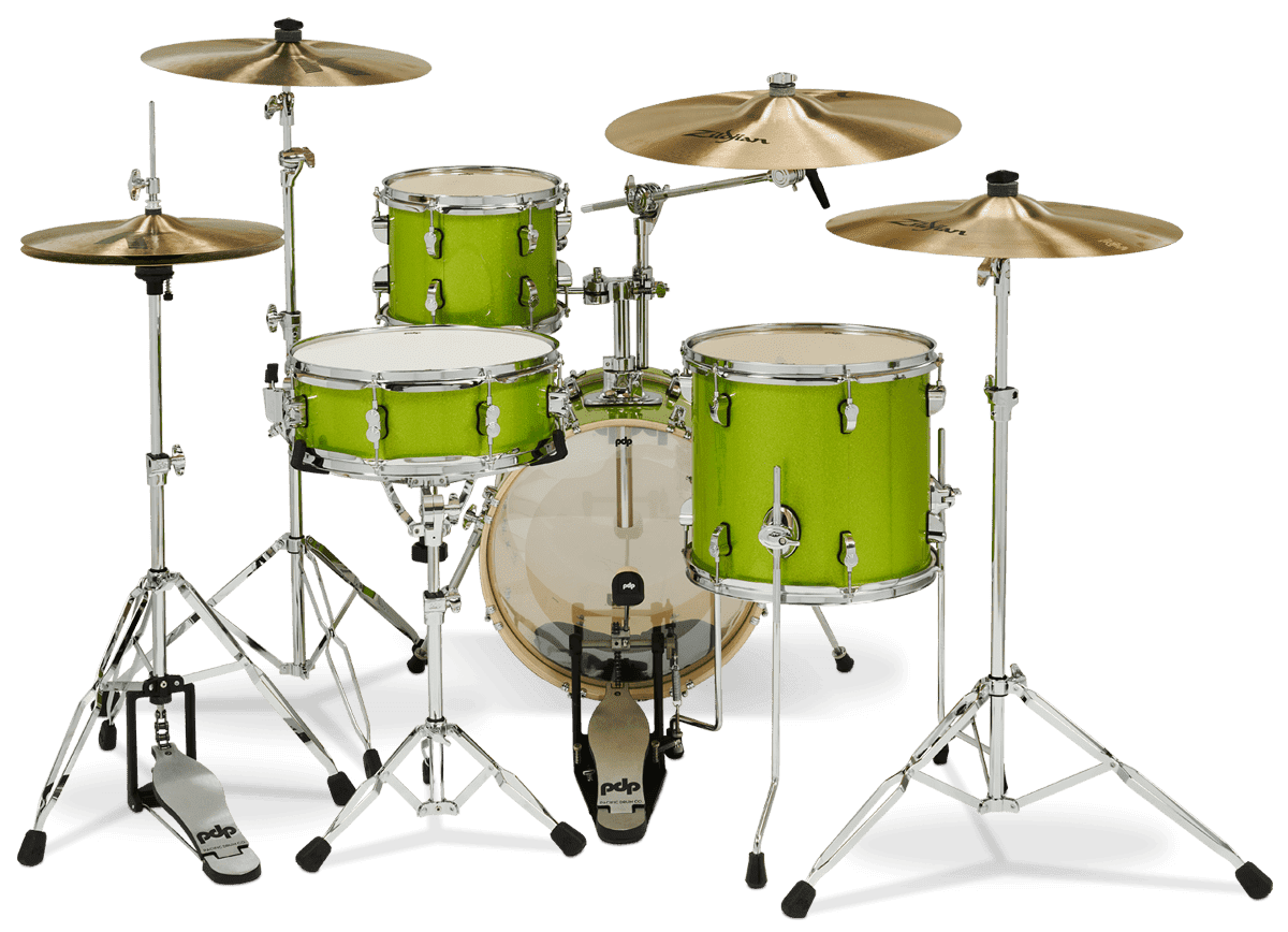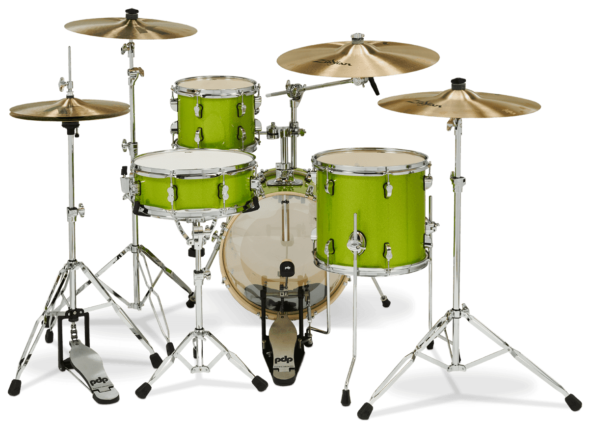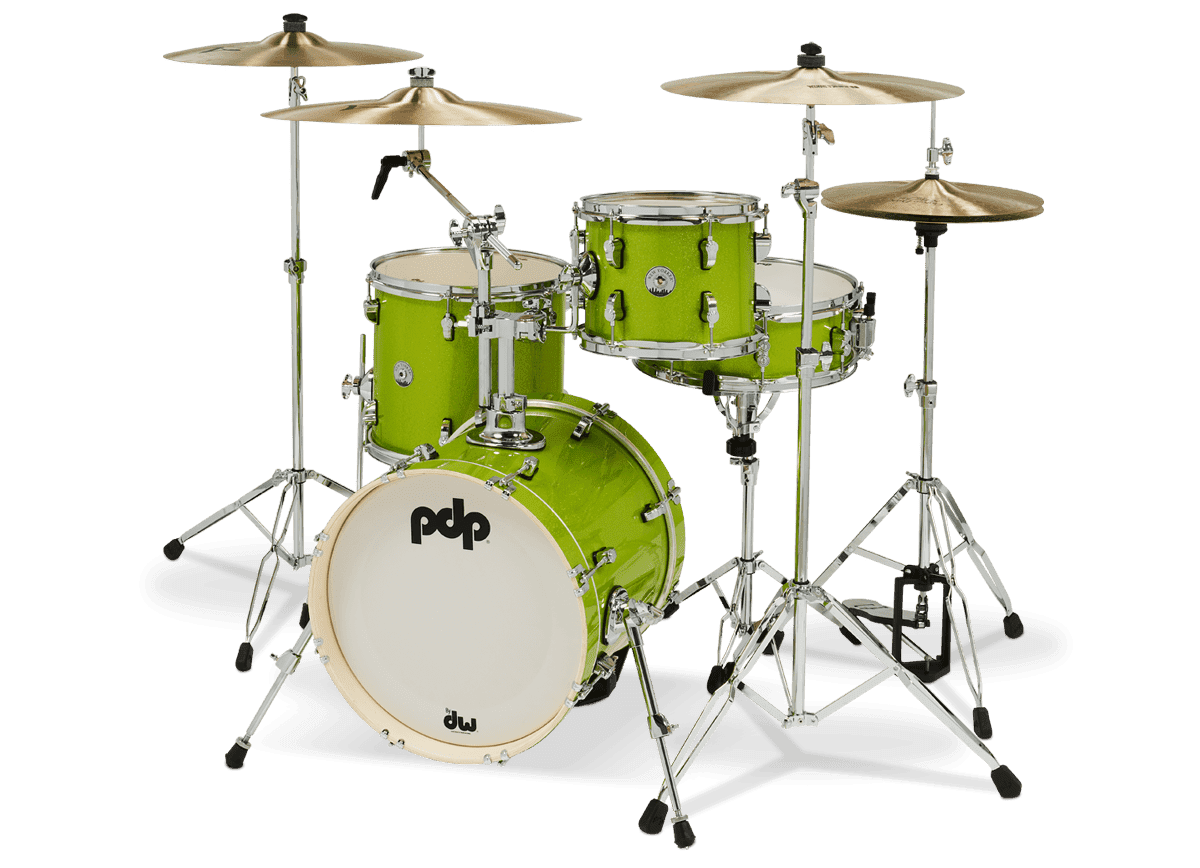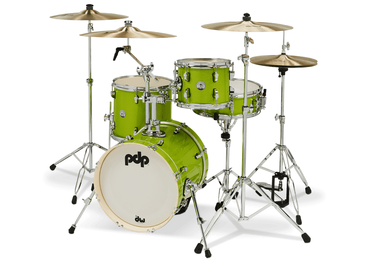 An 8”x10” mounted tom, 12”x13” floor tom, 14”x16” bass drum and 5”x14” snare. The New Yorkers are available from PDP in stylish kits for the student or working drummer, in brilliant Pale Rose, Electric Green or Black Onyx Sparkle finishes.