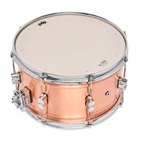 This snare offers a rolled 1.2mm copper shell for full attack with darker tone and a brushed exterior.