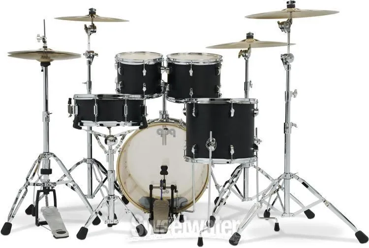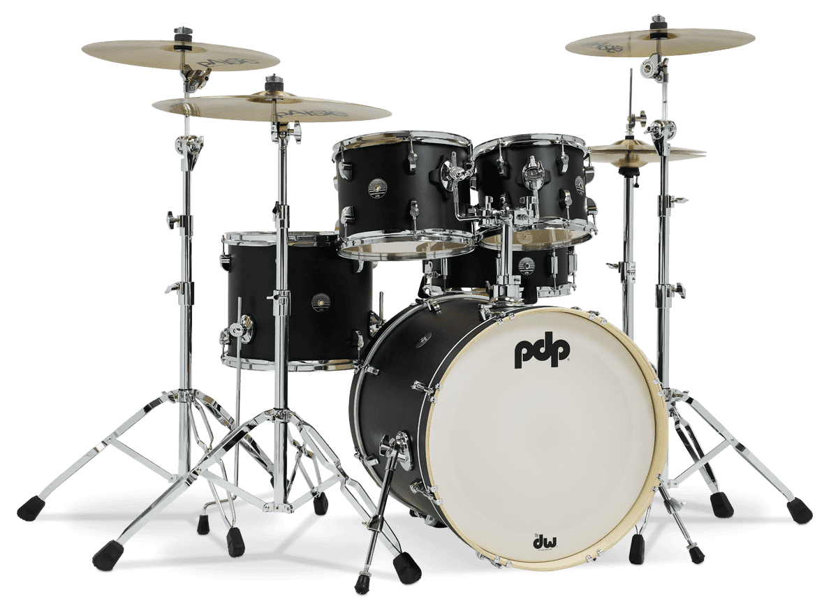 One-of-a-kind badges, lugs, and satin lacquer finishes mark PDP's foray into the entry range of intermediate kits. Introducing Spectrum: built from blended plies of broadband, cutting maple and dry, lightweight poplar done up in an irresistible matte finish, this shell pack has all the makings of a pro kit at a super-appealing price. So whether you're shopping for your first kit or looking for a tour-friendly stage setup, the Spectrum series proves to be a smart investment. Toms, snare, and kick in this lineup are capable of impressive range and tuning stability thanks to their inspired shell recipes and DW-lent True-Pitch tension rods. Shell-mounted Floating Tom Mounts (FTM) endow high toms with just the right balance of dryness and sustain while providing effortless positionability. Finally, a full set of Remo heads equips this kit for any style you can throw at it, from country to metal.
