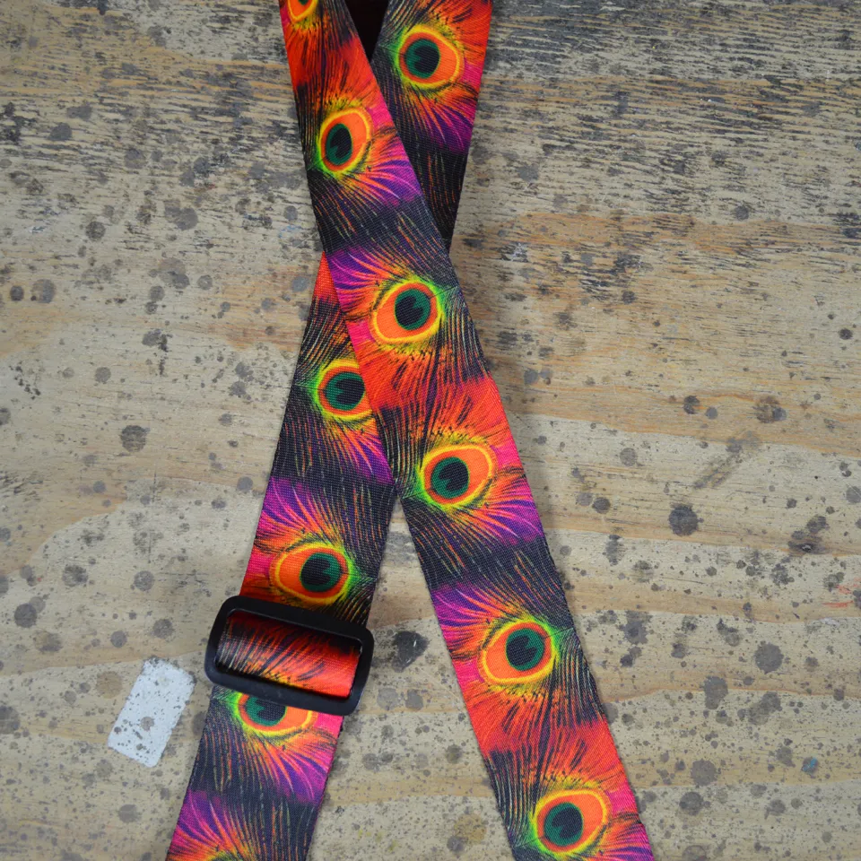 Peacock Feathers Printed Webbing Guitar Strap
