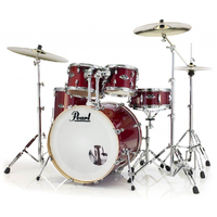 PEARL welcomes back the biggest selling name in drums. The Export has returned and includes a full overhaul of new features. The new Export Series offers a sonically advanced recipe of strategically arranged plies of premium popular and mahogany wood to maximize frequency response of every component. As with all Pearl drums, each shell is formed from our legendary SST construction process that uses extreme heat, Precision-cut scarf joints, our proprietary Acoustiglue and over 1000lbs of hydraulic pressure to create the ultimate acoustic air chamber. Pearl's new Opti-Lock mounting system, new Pearl 830 series hardware including the cool new Demonator pedal with long board. Cymbals not included. This is a 5 piece set up (10-12-14-14sn-22) in Black Cherry Glitter