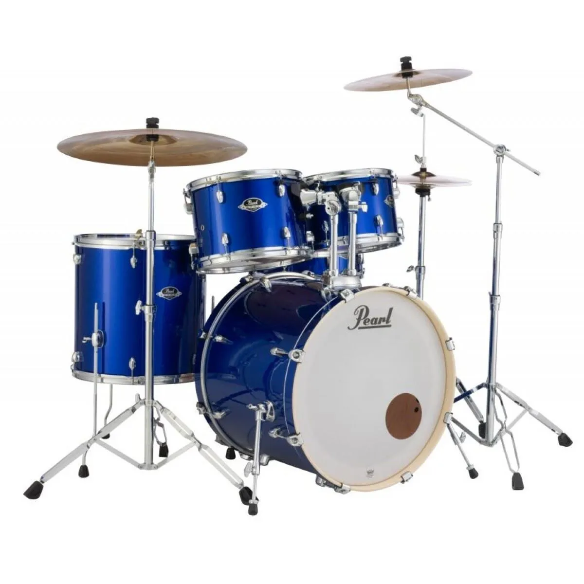PEARL welcomes back the biggest selling name in drums. The Export has returned and includes a full overhaul of new features. The new Export Series offers a sonically advanced recipe of strategically arranged plies of premium popular and mahogany wood to maximize frequency response of every component. As with all Pearl drums, each shell is formed from our legendary SST construction process that uses extreme heat, Precision-cut scarf joints, our proprietary Acoustiglue and over 1000lbs of hydraulic pressure to create the ultimate acoustic air chamber. Pearl's new Opti-Lock mounting system, new Pearl 830 series hardware including the cool new Demonator pedal with long board. Cymbals not included. This is a 5 piece set up (10-12-14-14sn-22) in High Voltage Blue