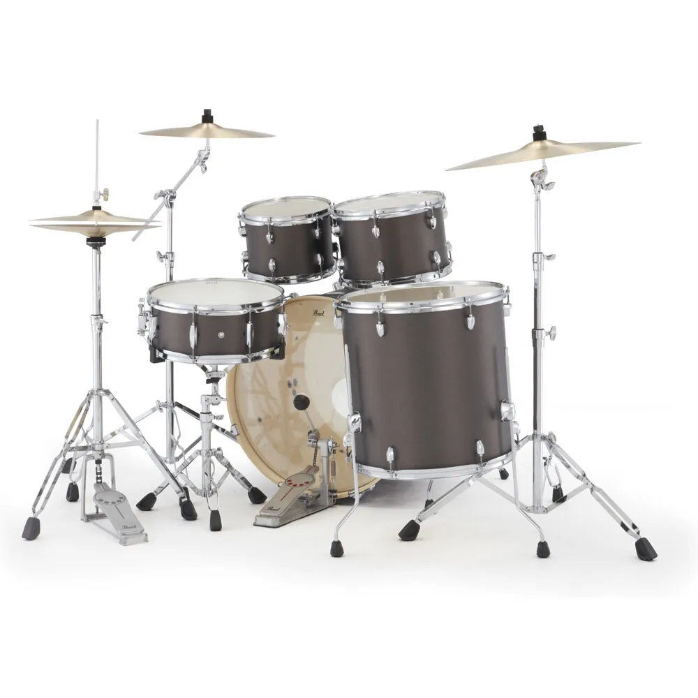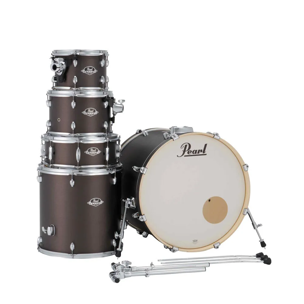 Pearl welcomes back the biggest selling name in drums. The Export has returned and includes a full overhaul of new features. The new Export Series offers a sonically advanced recipe of strategically arranged plies of premium popular and mahogany wood to maximize frequency response of every component. As with all Pearl drums, each shell is formed from our legendary SST construction process that uses extreme heat, Precision-cut scarf joints, our proprietary Acoustiglue and over 1000lbs of hydraulic pressure to create the ultimate acoustic air chamber. Pearl's new Opti-Lock mounting system, new Pearl 830 series hardware including the cool new Demonator pedal with long board. Cymbals not included. This is a 6 piece set up (10-12-16-14sn-22) in Graphite Slate.