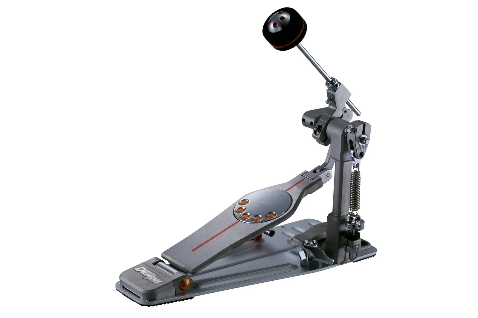 The Demon Drive Single Pedal's lightning fast power and silky smooth finesse make it the choice of the drumming world’s most prolific players. Its Direct Link drive's spherical bearings combine with an array of custom settings for the smoothest pedal action possible. Every aspect of the pedal's performance -from the way it feels in play to its level of speed and contact- directly affects your playing; so the P3000D can be adjusted to best suit your personal playing style. The first bass drum pedal that easily converts from a long board to a traditional pedal board, Demon Drive's modular design makes it configurable (and even expandable,) in a variety of single and double pedal set-ups.