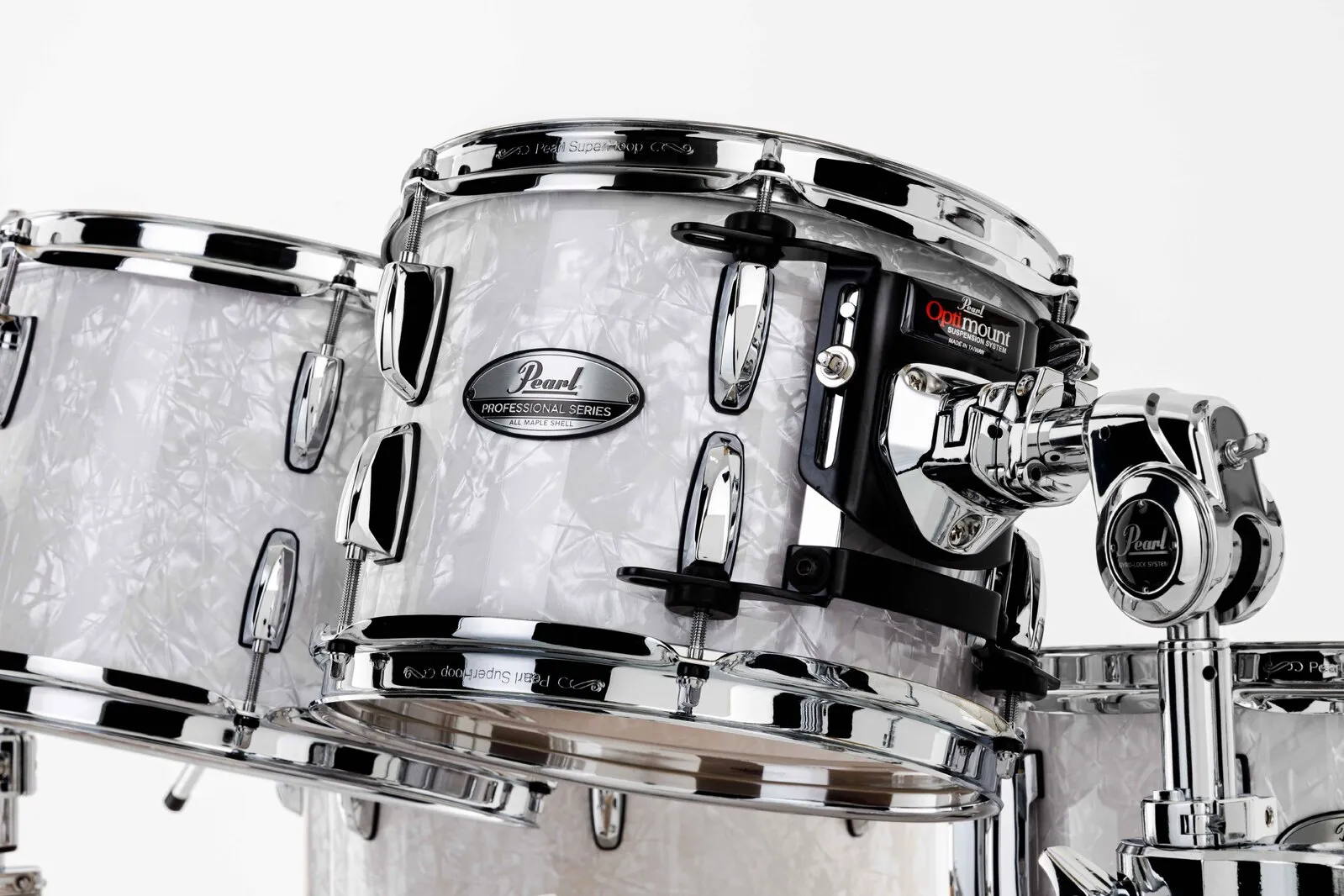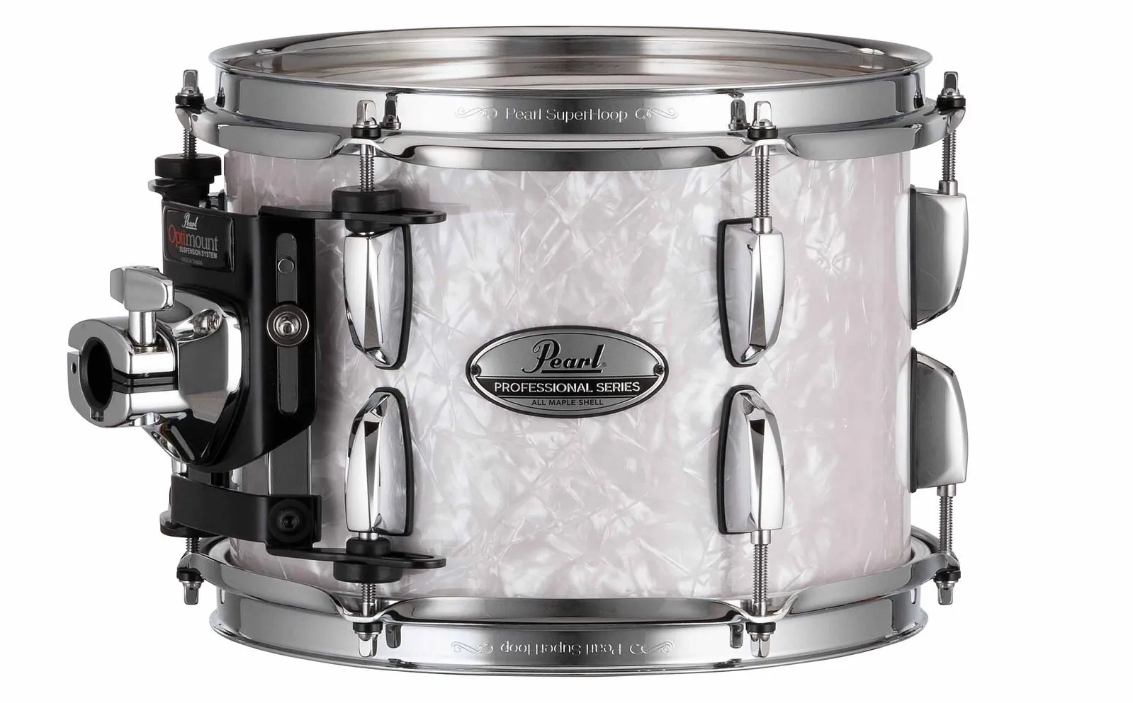 Professional Maple's total sound is enhanced by strong hardware elements and is designed to hold tuning under heavy play without inhibiting shell resonance. To pull the best voice from each Maple shell in the kit, all drums feature hardware elements selected for their tone enhancing properties. These include the SP30 bass drum spur with spring-loaded retractable spike, bridge-style RL Lug and LB40 Floor Tom Bracket for low shell contact, OptiMount four-point tom suspension mounts, R40 Air Suspension Floor Tom Feet, Die-Cast Bass Drum Claws, and Superhoop II Triple-Flanged Hoops. Each of these hardware pieces lends not only to the tuning and function of each drum but also to the overall sound of the total Professional Maple drum kit.