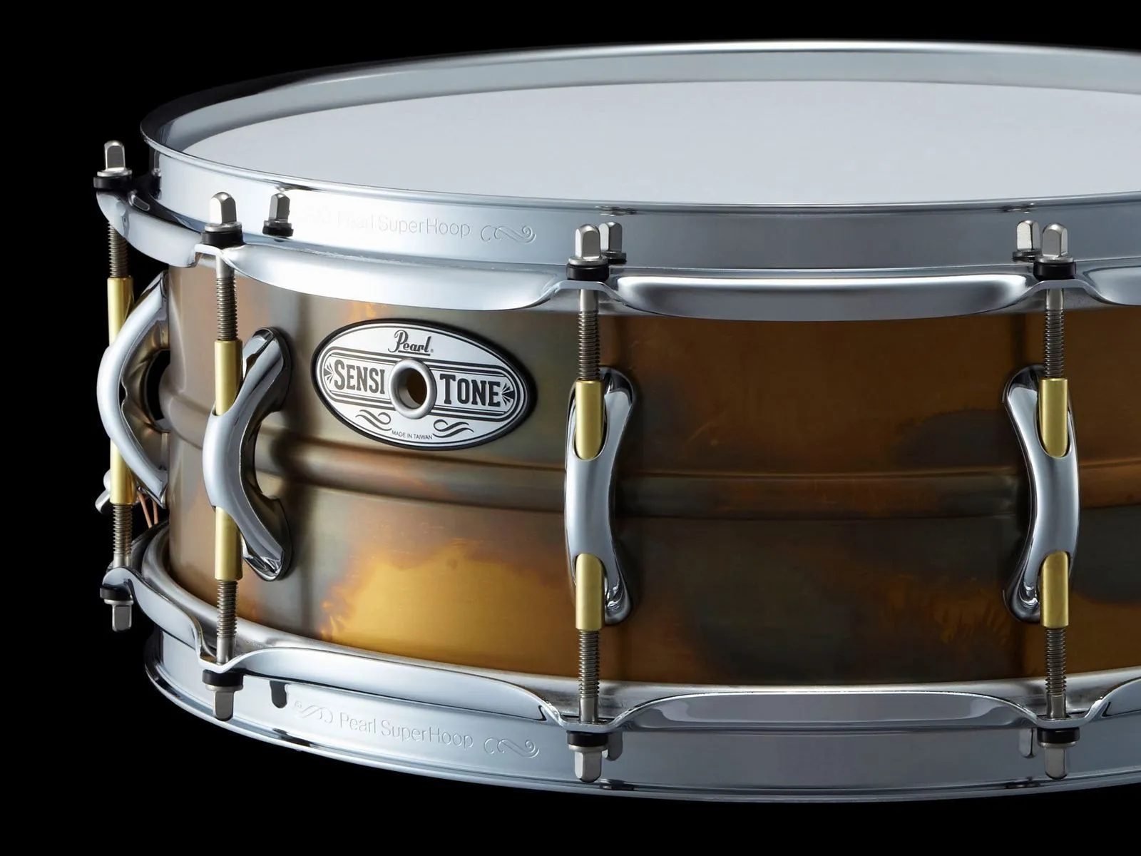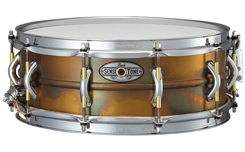 Engineered for performance perfection, Sensitone Premium snare drums are refined, first-call perussion instruments that demand a place of prestige in the pro player's pallet.  Featuring a hand-appointed 1.5mm beaded patina shell, the Sensitone Elite Brass snare is adorned with Pearl's stylish Arch Tube Lug, Click-Lock throw-off, and 2.3mm Superhoop II hoops.