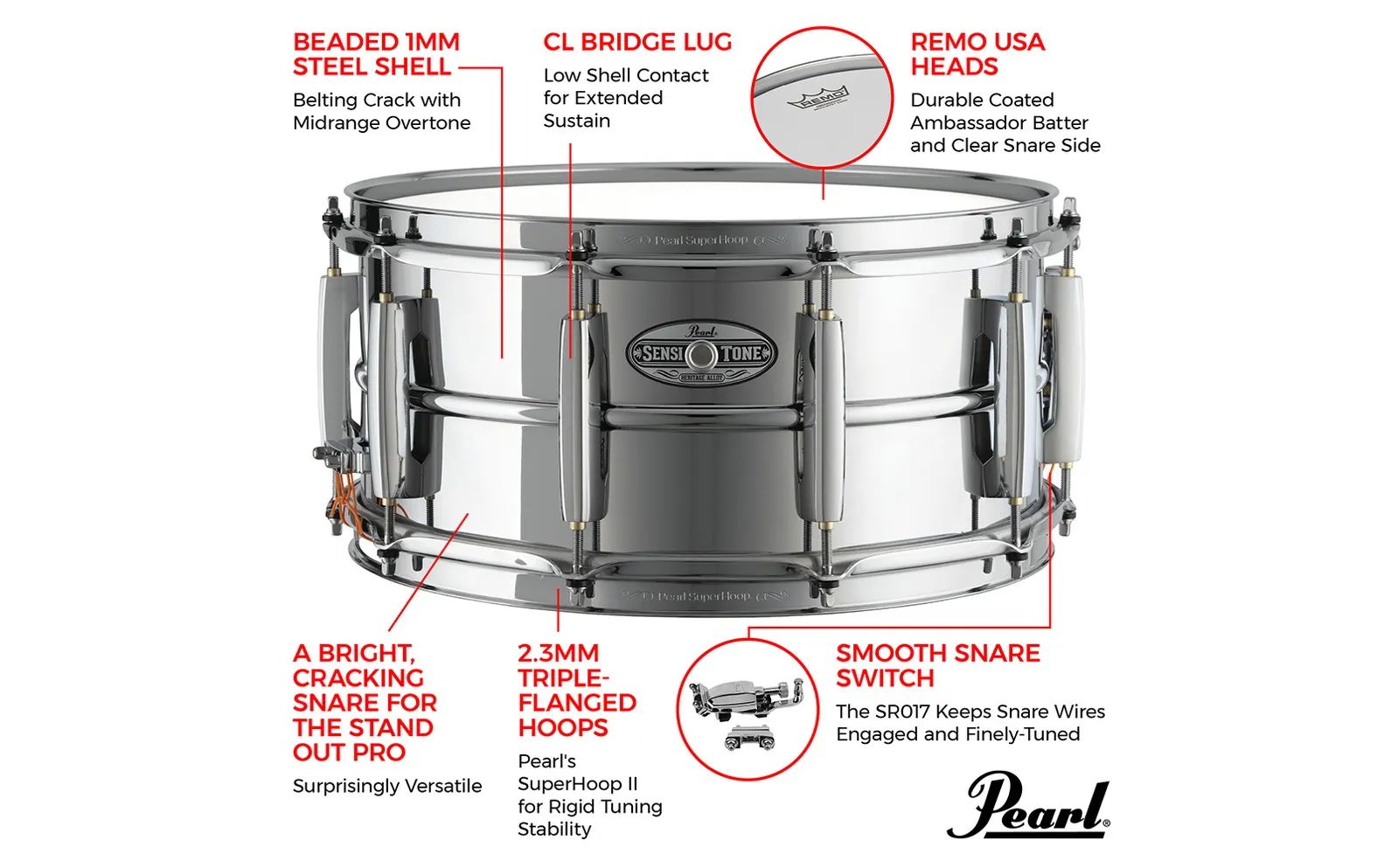 Pearl STH1465S Sensitone Heritage Alloy Steel 14 x 6.5 Snare Drum