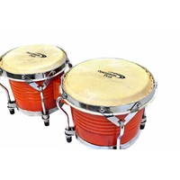 This Percussion Plus deluxe wooden bongo set comes in a gloss natural lacquer finish and features 6" & 7" natural hide heads, wood shell construction and chrome finished hardware.