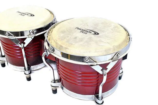 Percussion Plus Deluxe 6 & 7" Wooden Bongos in Gloss Red Lacquer Finish