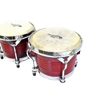 This Percussion Plus deluxe wooden bongo set comes in a gloss red lacquer finish and features 6" & 7" natural hide heads, wood shell construction and chrome finished hardware.