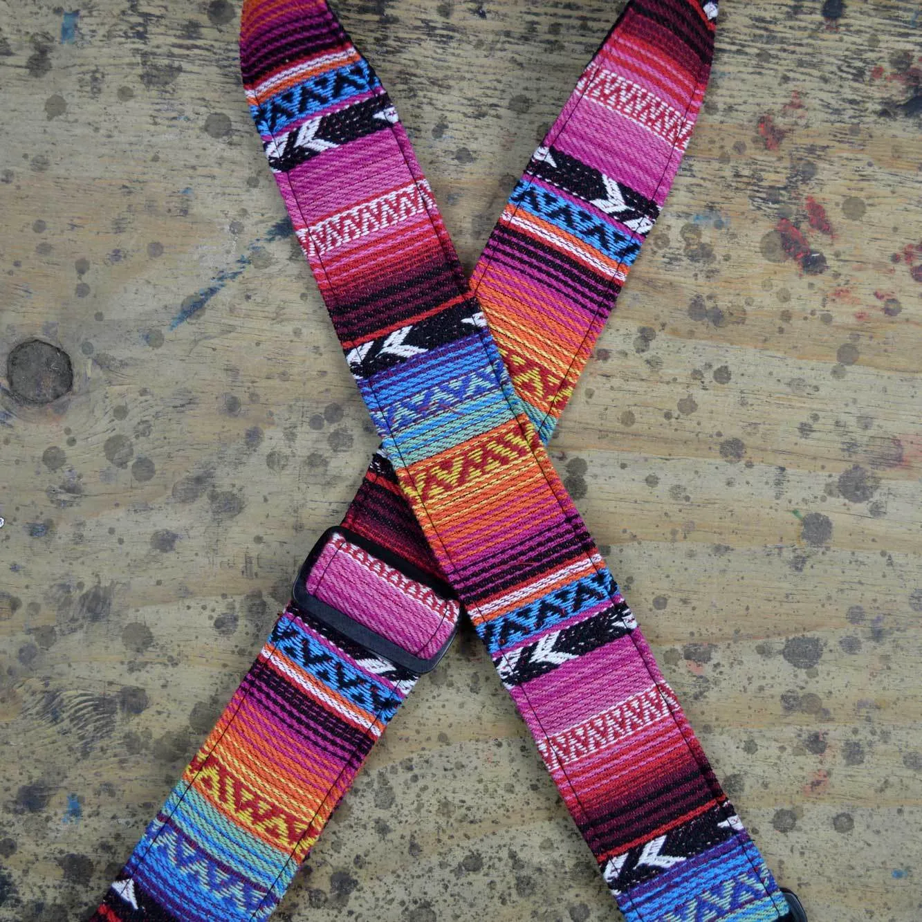 50mm Pink Rasta rag guitar strap.