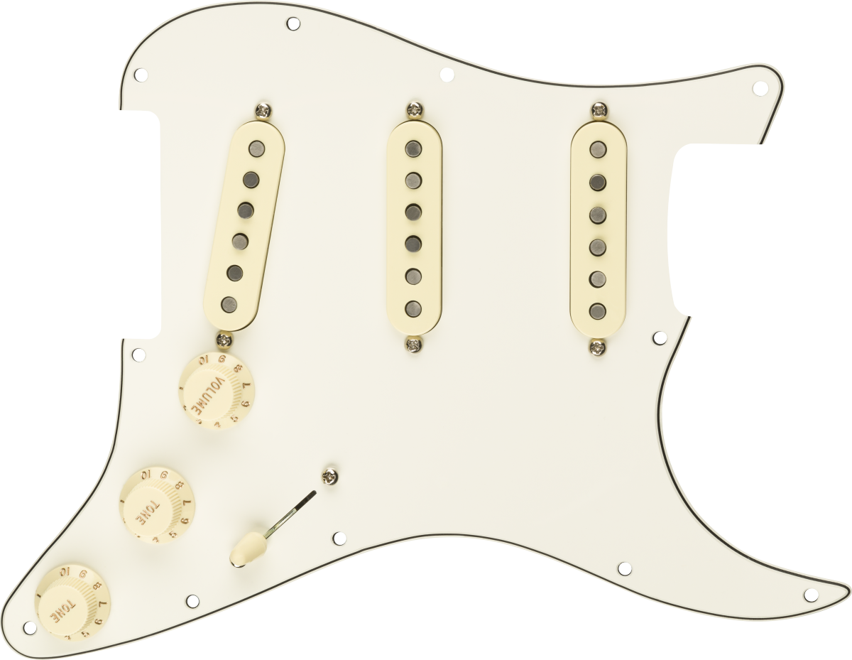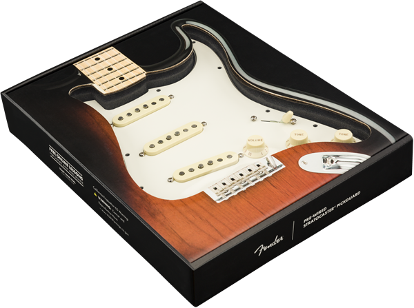 Customize your tone with the Pre-Wired Stratocaster pickguards. Made with premium components in the same factory as our iconic guitars, this drop-in pickguard is easy to install. Simply remove your old guard, solder the output jack and ground wires, screw in the new guard and you're ready to rock with pure Fender sound.