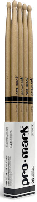The ProMark Classic Forward 2B drumstick features an oval tip shape and a short taper, producing a forward-weighted feel for increased power.