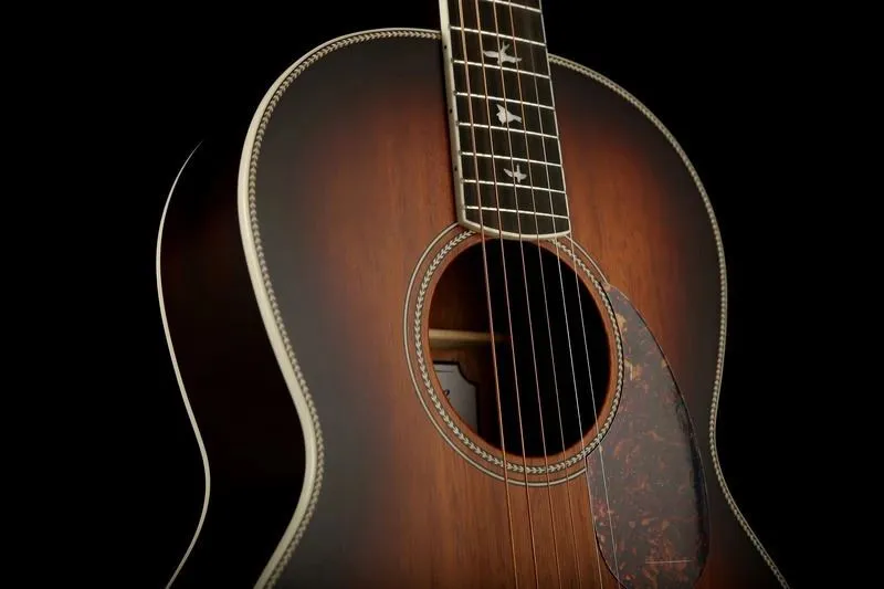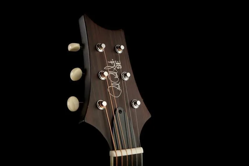 Available in three satin finishes with herringbone rosettes and accents, PRS SE Parlour acoustics look as good as they sound. Other high-quality features include a solid mahogany top, ebony fretboard and bridge, bone nut and saddle, as well as PRS trademark bird inlays and headstock design. PRS SE Parlour acoustics come with a gig bag and are strung with 12-53 strings.