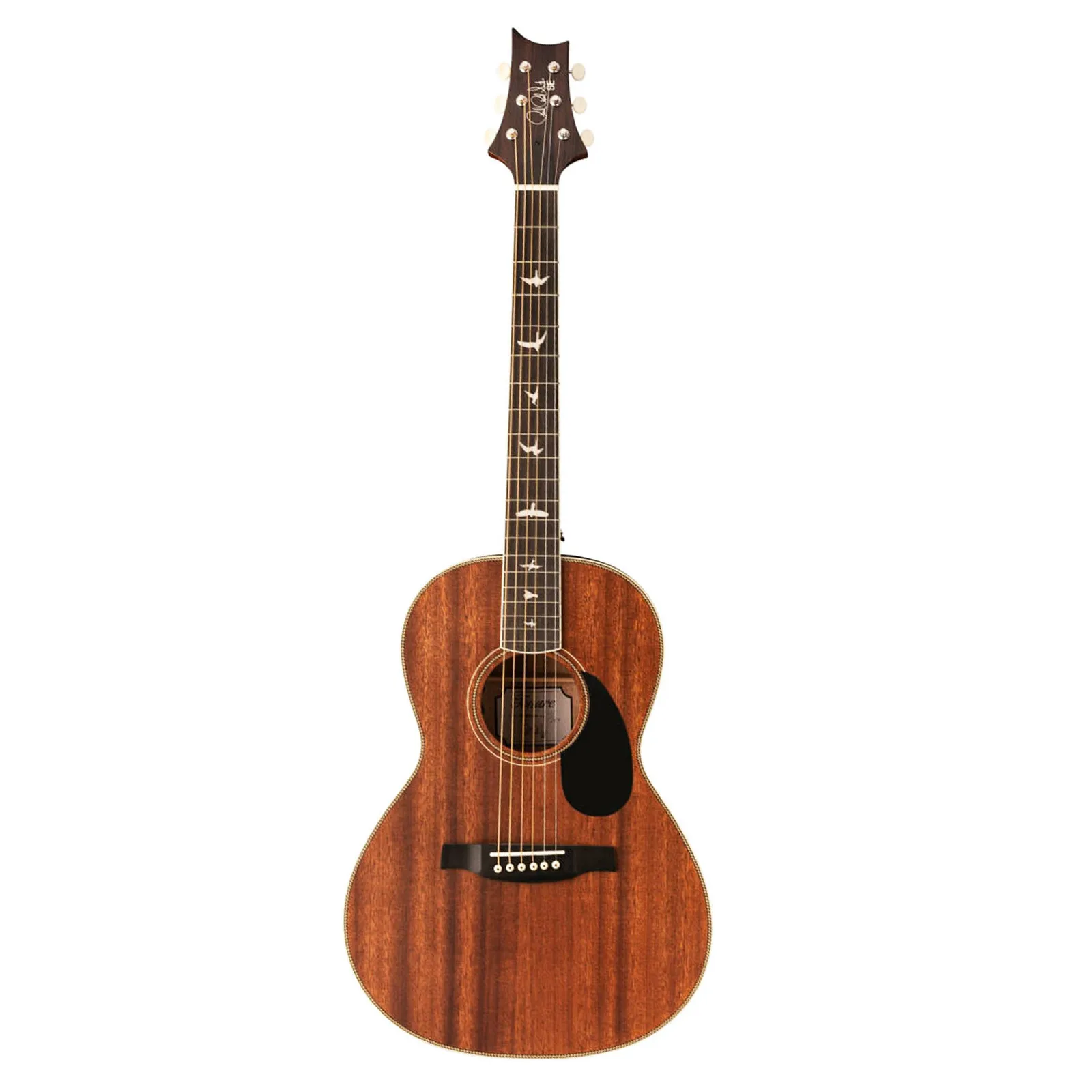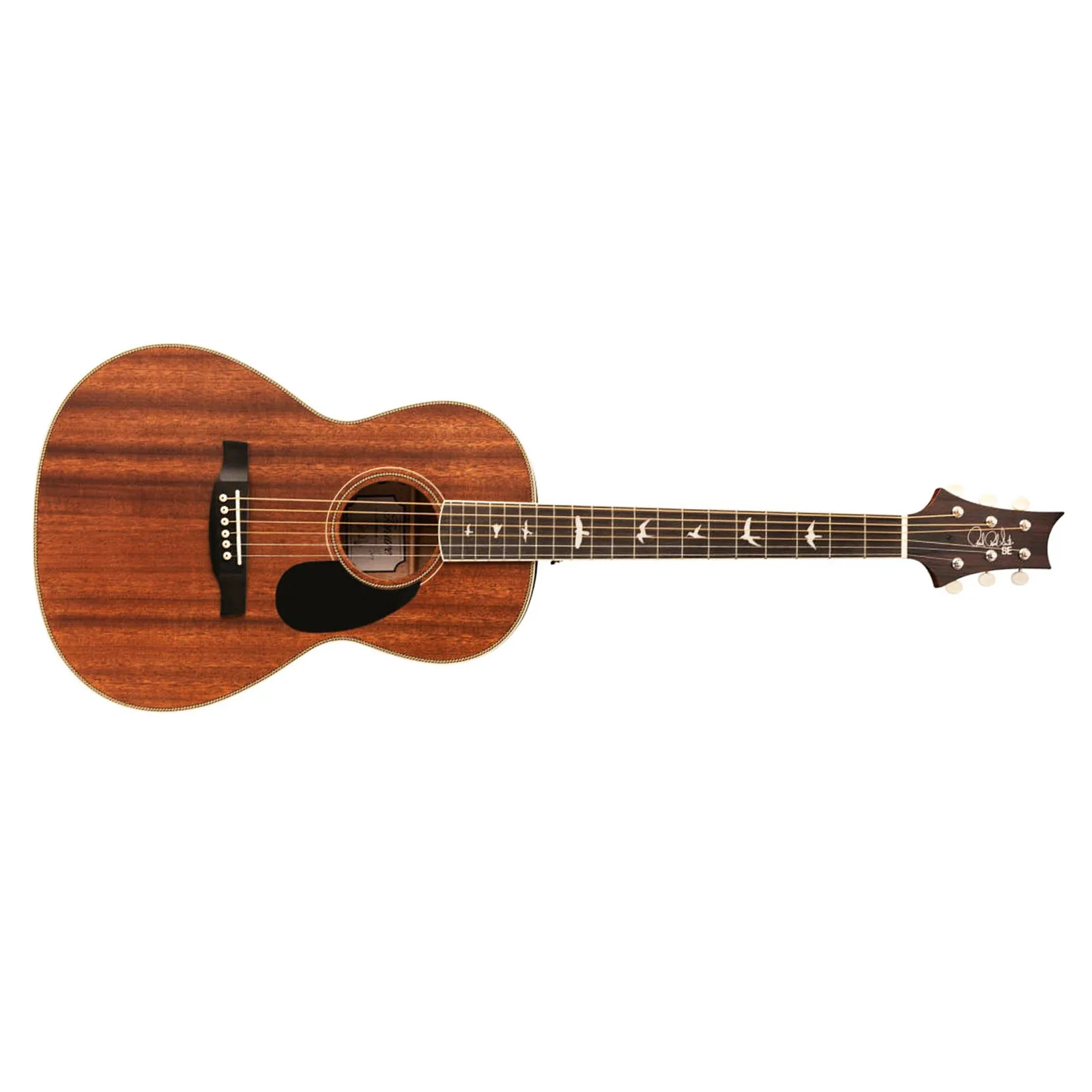 Available in three satin finishes with herringbone rosettes and accents, PRS SE Parlor acoustics look as good as they sound. Other high-quality features include a solid mahogany top, ebony fretboard and bridge, bone nut and saddle, as well as PRS trademark bird inlays and headstock design. PRS SE Parlor acoustics come with a gig bag and are strung with 12-53 strings.