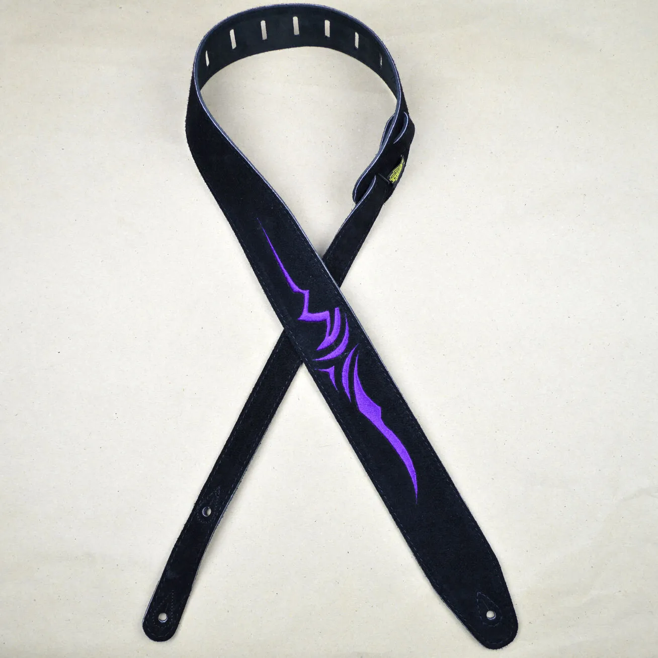 Purple Celtic Embroidered Black Suede Guitar Strap