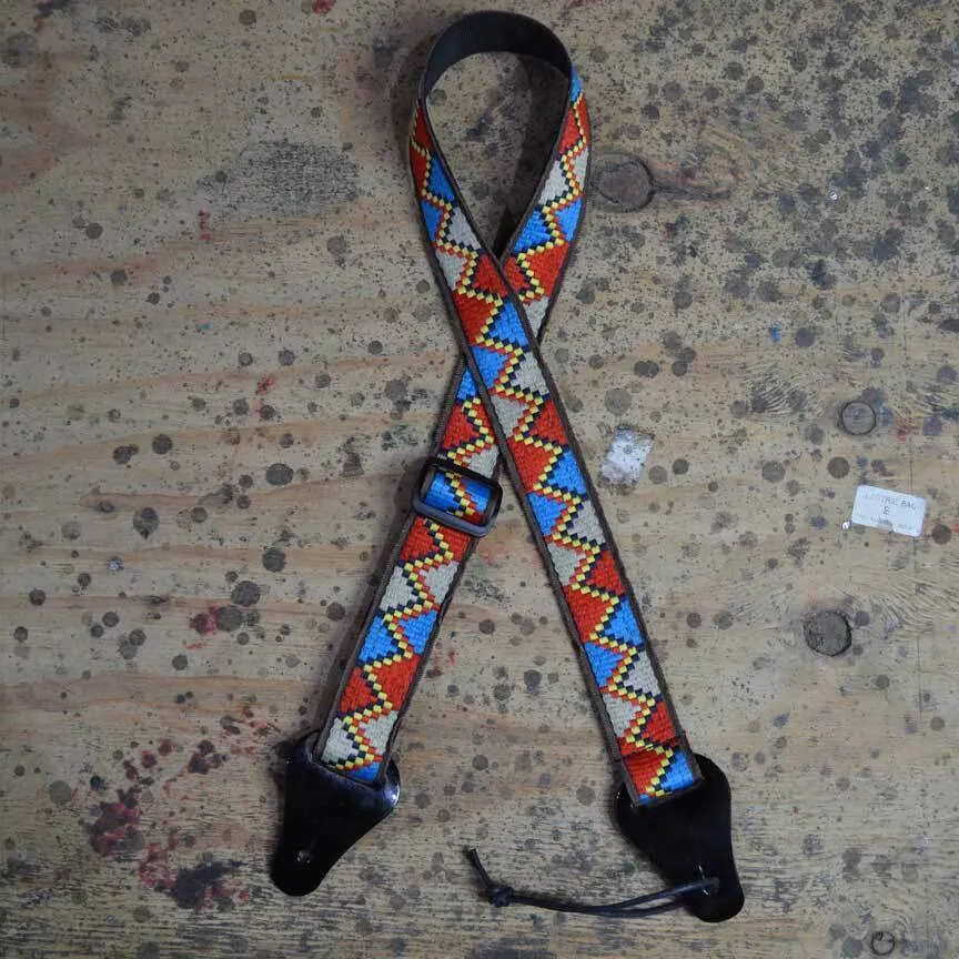 Red, Yellow & Blue Lines Zig Zag Jacquard Ukulele Strap