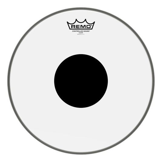 Remo Controlled Sound Clear Black Dot 13″ CS-0313-10The Controlled Sound® Clear Top Black Dot™ drumheads features focused midrange tones with a well-defined attack. Constructed with 1-ply of 10-mil Clear film and a 5-mil Top Black Dot™, Controlled Sound® Clear Black Dot™ drumheads provide articulate attack and projection with added durability. The drumhead’s outer area offers enhanced tone and sensitivity while the center Black Dot™ adds durability and overtone control.Ideal for all playing applicationsAvailable in sizes 6″ – 40″1-ply 10-mil Clear film and 5-mil Top Black Dot™Black Dot™ adds durability and overtone control.Focused midrange tones with well defined attack
