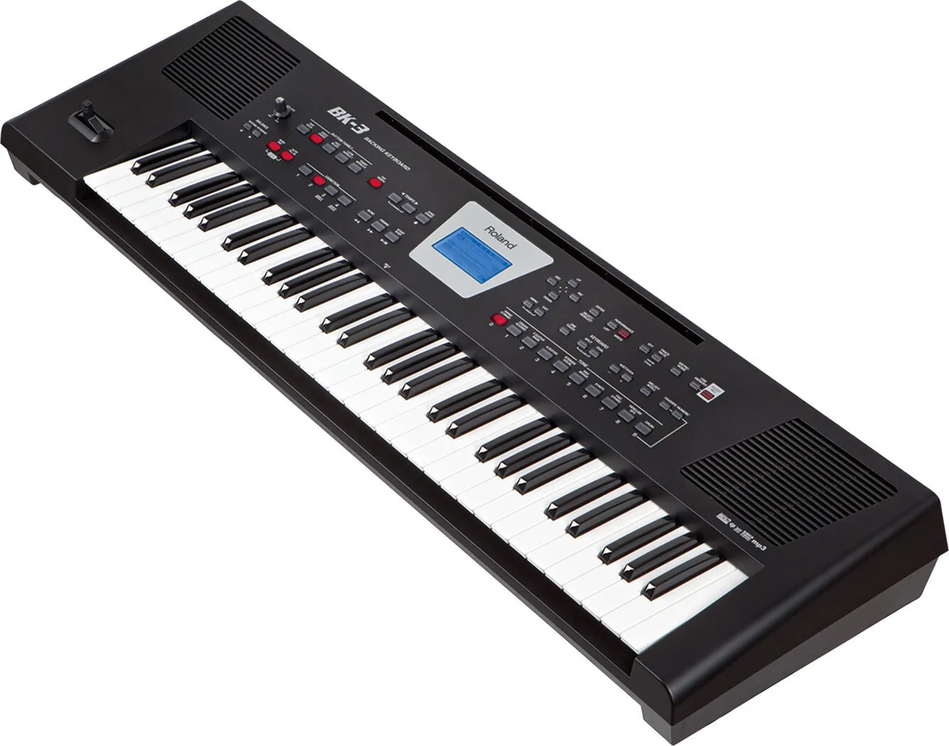 The portable and playable Roland BK3BK backing keyboard represents the ideal entry-level instrument for soloists, hobbyists, play-at-home enthusiasts and bandmates. Play back a song via a USB memory stick so you can augment the sounds as you tickle the synthetic ivories. Built-in speakers project your playing to everyone in the room or to an amp so the entire venue hears your sounds. You have an entire ensemble at your fingertips with this compact arsenal of digital sounds.