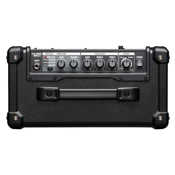 Featuring three switchable amp types (Clean, Crunch and Lead) and 3-band EQ, as well as onboard chorus, delay and reverb effects, the CUBE 10GX is as versatile as it is compact, delivering its bold tone via a custom 8-inch speaker.