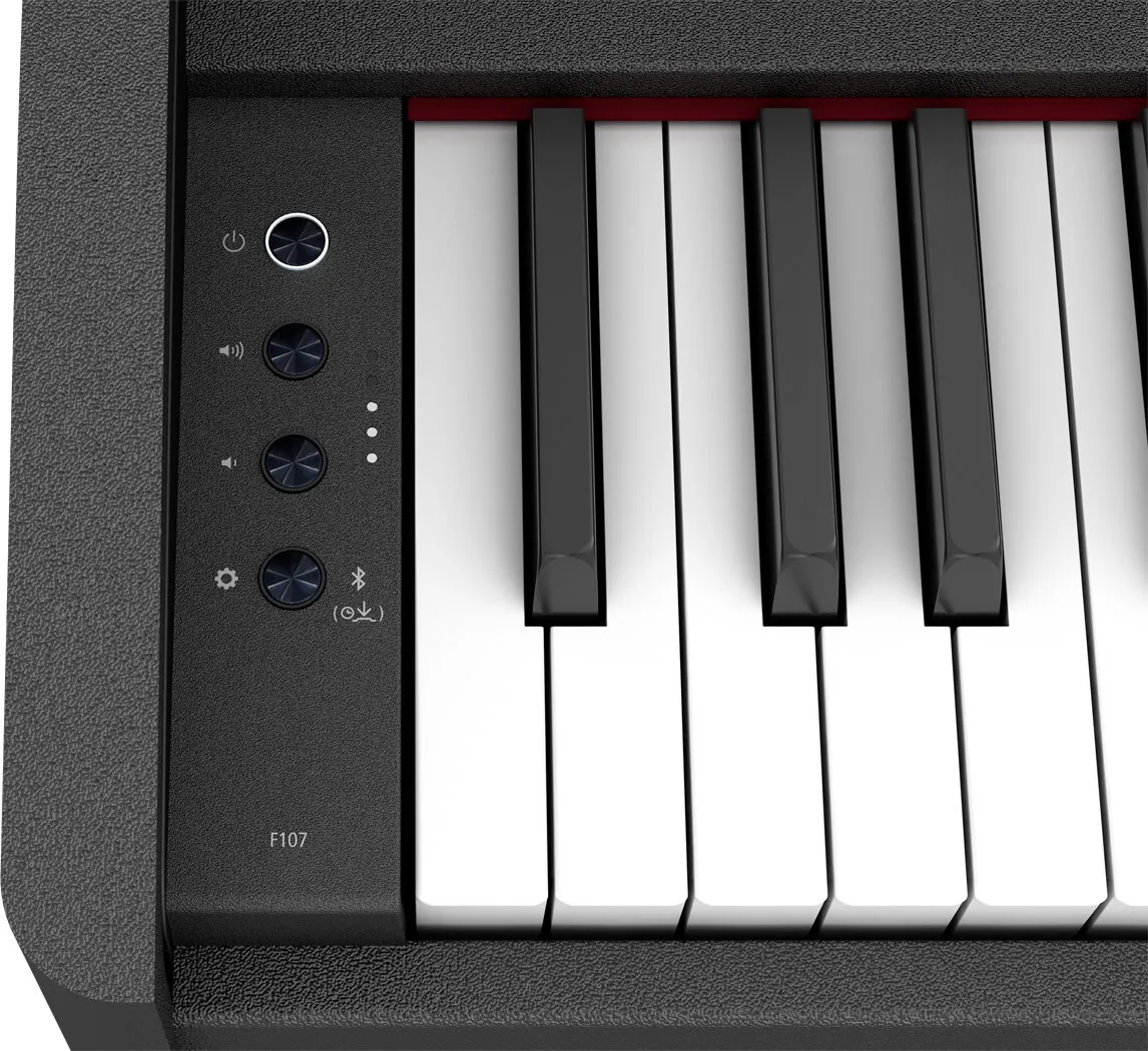 Along with its compact and portable design, the F107 offers numerous advantages over an acoustic piano. Onboard recording lets you check your progress and share music, while Twin Piano mode enables you to play alongside a family member, friend, or teacher. Volume control is just a button press away, and you can connect two sets of headphones to play anytime without disturbing others. And without the need for tuning and regular maintenance, the F107 always sounds perfect every time you to power on.