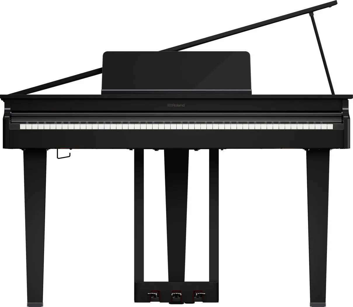 The GP-3 is a marvel to behold, fusing traditional grand piano luxury with a streamlined design that’s only possible with a modern digital instrument. With a front-to-back depth of just 698 mm/27.5 inches, it easily fits where larger pianos can’t. The striking black gloss finish, classic curves, and fine details convey sophistication and grace, while the slim cabinet projects a commanding presence that belies its modest footprint.
