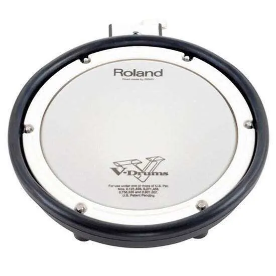 The Roland PDX8 compact V-Pad boasts an expanded rim that makes it easy to hit quieter rim shots. The pad itself measures 203 mm, and this size extends to 254 mm with the rim. This mesh V-pad has separate triggering zones on the head and the rim to produce a more natural resonance and tone.