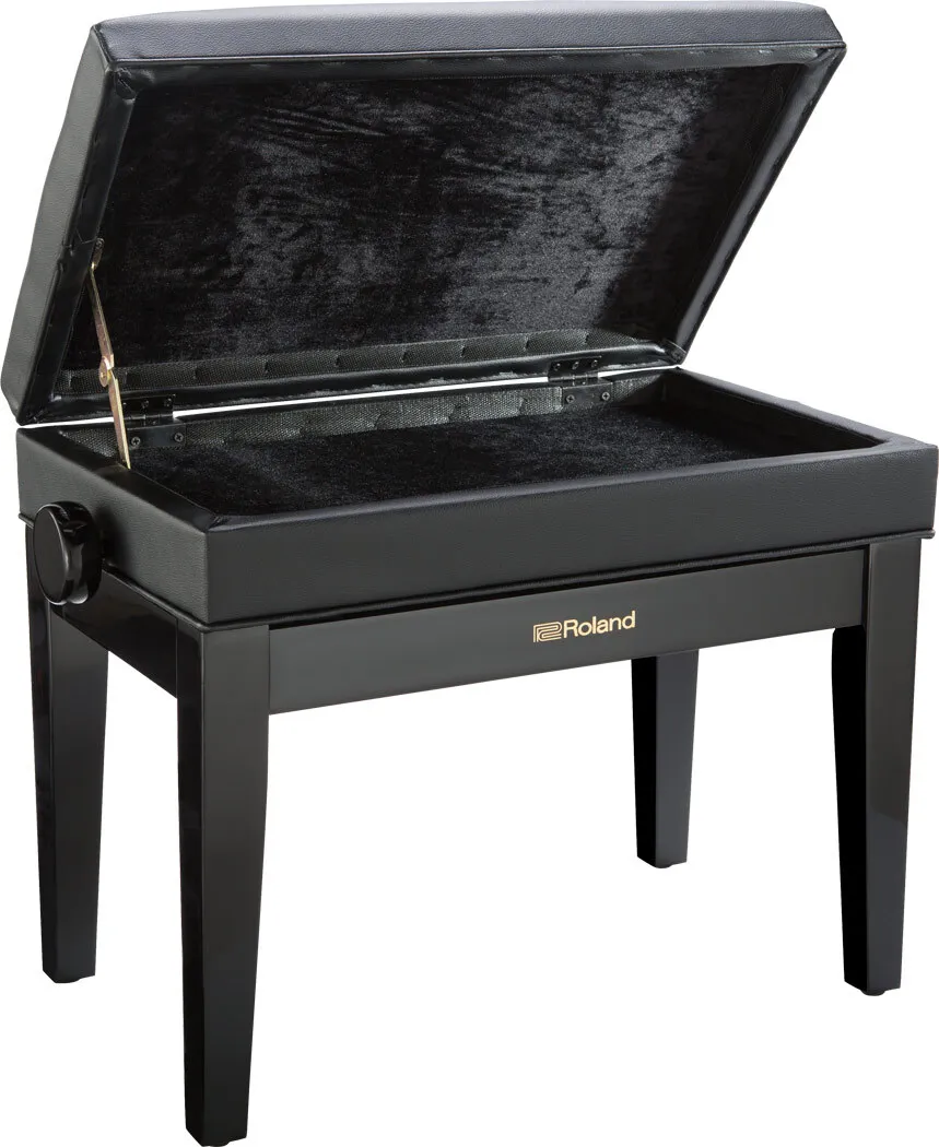 The Roland RPB-400PE is an adjustable-height bench seat for use with pianos and other keyboard instruments. Solid wood construction provides lasting durability. The seat top is cushioned for comfort during long playing sessions, and lifts to provide access to a storage compartment for sheet music and accessories.
