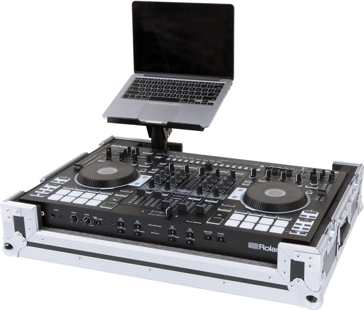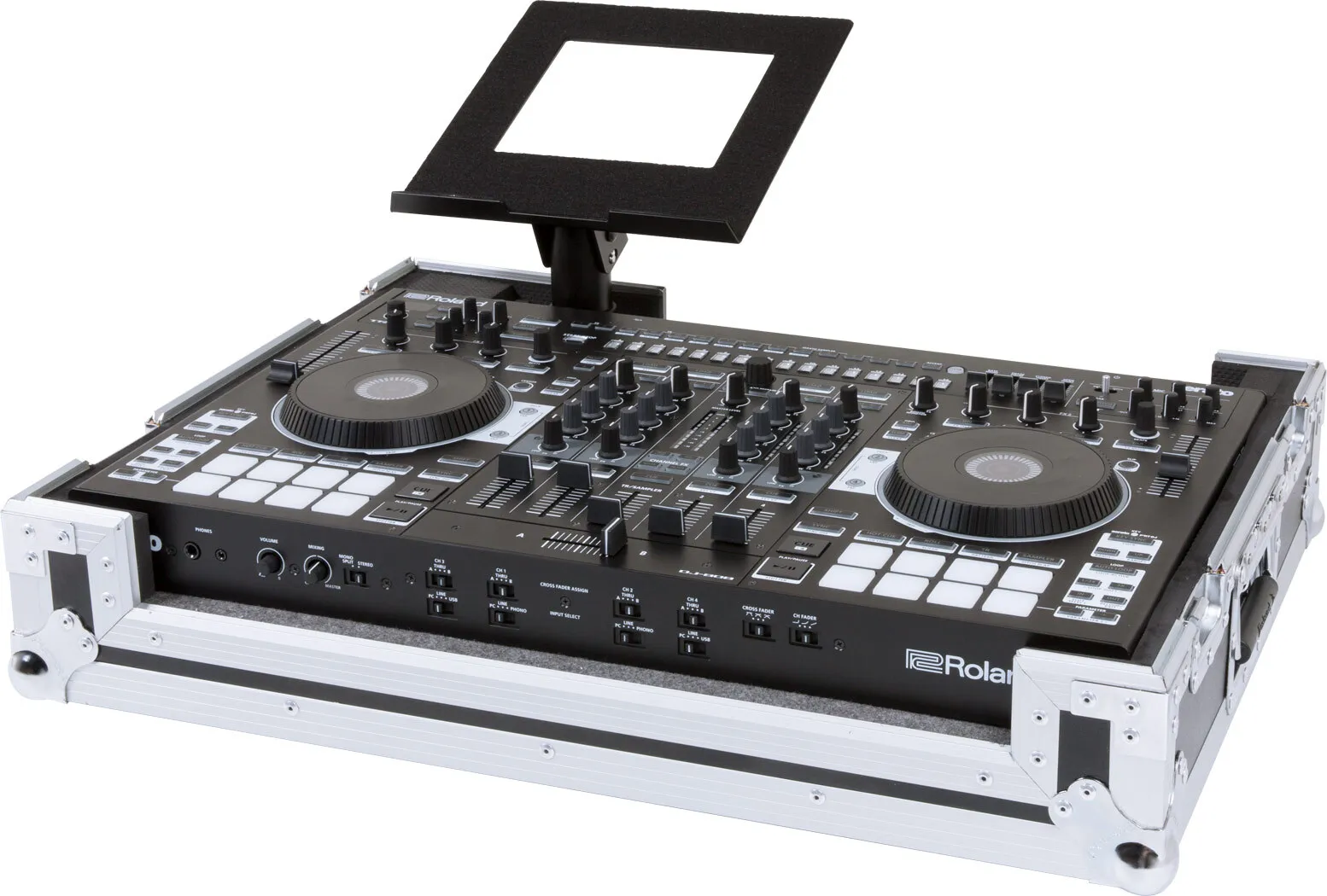 Tough and durable, the RRC-DJ808 features a rugged exterior and steel recessed hardware to shield your DJ-808 DJ Controller from bumps and bruises. Removable access panels make setup easy, and there’s even a built-in stand for your laptop computer. Ideal for road use, the Roland Black Series provides the ultimate protection for your valuable gear.